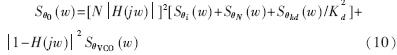 為壓控振蕩器附加的相位噪聲譜。由于鎖相環閉環傳輸函數H(jw)具有低通性質,即: