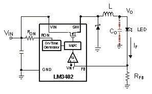類似的滯回降壓LED驅(qū)動可以在固定頻率操作和不需要開關(guān)頻率變化的滯回控制之間提供了一個比較好的折中方案。控制開啟時間的降壓LED驅(qū)動(圖2b)使用了一個滯回比較器和開啟時間控制器。讓開啟時間與輸入電壓成反比,這樣可以讓開關(guān)頻率的變化減少的最小。運用這種結(jié)構(gòu)同樣可以避免環(huán)路控制的帶寬限制。運用不同的調(diào)光結(jié)構(gòu)可以讓調(diào)光范圍變得非常寬。