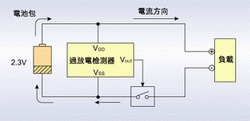 隨著使用時間的增加,已充過電的鋰離子電池電壓會逐漸降低,最后低到規(guī)格標準值以下,此時就需要再度充電。若未充電而繼續(xù)使用,可能造成由于過度放電而使電池不能繼續(xù)使用。為防止過度放電,保護IC必須檢測電池電壓,一旦達到過度放電檢測電壓以下,就得使放電一方的功率MOSFET切斷而截止放電。但此時電池本身仍有自然放電及保護IC的消耗電流存在,因此需要使保護IC消耗的電流降到最低程度。