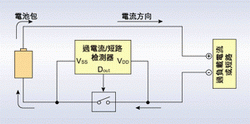 因不明原因導致短路時必須立即停止放電。過電流的檢測是以功率MOSFET的Rds(on)為感應阻抗,以監(jiān)視其電壓的下降,此時的電壓若比過電流檢測電壓還高時即停止放電。為了使功率MOSFET的Rds(on)在充電電流與放電電流時有效應用,需使該阻抗值盡量低,目前該阻抗約為20mΩ~30mΩ,這樣過電流檢測電壓就可較低。