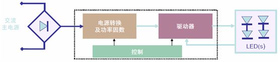 在“功率因數(shù)校正(PFC)+恒壓(CV)+恒流(CC)”的三段式架構(gòu)下,交流-直流(AC-DC)轉(zhuǎn)換與LED驅(qū)動電路并未集成在一起,而是采用分布式配置,既簡化安全考慮又增強系統(tǒng)靈活性,也稱作分布式方案,典型應(yīng)用包括線性燈及線槽燈等。