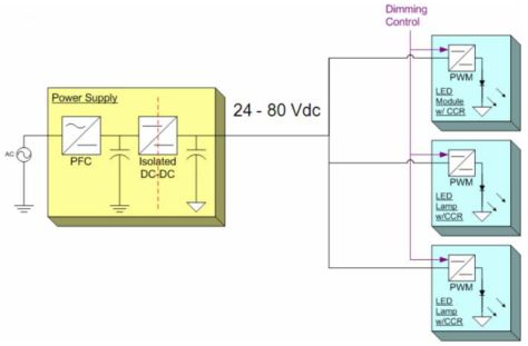 圖2 典型的模塊化LED區(qū)域照明電源架構(gòu)示意圖[page]