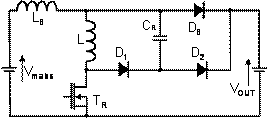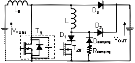 從理論上講,因為所有的開關(guān)損耗都被消除,零壓轉(zhuǎn)換(ZVT)是功率因數(shù)校正(PFC)應(yīng)用最理想的拓撲。此外,不管輸入和輸出功率如何變化,這種電路都能正常工作。然而,在實際應(yīng)用中,升壓二極管DB的反向恢復(fù)電流對零壓轉(zhuǎn)換電路的影響非常明顯,致使電感和最小占空比都受到一定程度的限制。因為小線圈L上的重置電流,D2 的反向恢復(fù)電流包含高應(yīng)力電壓和寄生阻尼振蕩。最后,PN二極管的動態(tài)特性影響零壓轉(zhuǎn)換(ZVT)電路的總體能效,因為這個晶體管的導(dǎo)通時間應(yīng)該增加,而且為降低半導(dǎo)體器件遭受的電應(yīng)力,必須增加一個有損緩沖器。