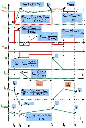這種配流有利于BC²電路。事實上,在交流電壓較低的功率因數(shù)校正應(yīng)用(例如90 VRMS)中,最高增強電流是在二極管DB 和D1之間機械分配。因此,整流階段的導(dǎo)通損耗得到改進。下面是反射電壓VNS2 和D2 導(dǎo)通時間的計算公式: