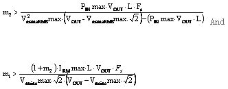 為在[t1-t2]和[t3-t4]時序期間符合斷續(xù)模式,圖5所示的時間參數(shù)td1和td2應(yīng)總是正值。根據(jù)典型連續(xù)導(dǎo)通模式(CCM)功率因數(shù)校正規(guī)則和tD1_ON 和tD2_ON 表達式,確定變壓比條件m1 和 m2 不是難事。