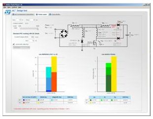 該軟件設(shè)計工具可以提供微型線圈和主功率因數(shù)校正器的輔助線圈的參數(shù)、二極管選型和功率MOSFET的RDS(on)。還可算出每個組件的功率損耗,并與使用一個碳化硅二極管的功率因數(shù)校正器對比。