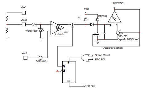 在下列情況時,VLBO可下拉至2V(VLBO(PD)):VLBO高于2V(高線路電壓時),以及VCTRL處于最大值的時間長于4ms(tPFCflag);Vbulk低于額定輸出的95%時。PFCPowerBoost功能在啟動時被禁止;最長下拉持續時間的典型值為5ms(tLBO(PDlimit));在后續最少70ms時間(tLBO(PDblank))內,開關保持在開路狀態。