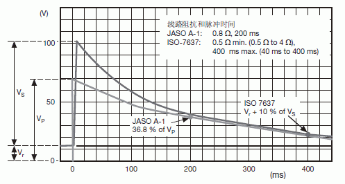 兩個熟知的試驗模擬了這個條件:針對14V動力總成的美國ISO-7637-2 Pulse 5和日本JASO A-1和針對27V動力總成的JASO D-1。在本節中,我們將回顧在14V動力總成中用于甩負荷的TVS應用。