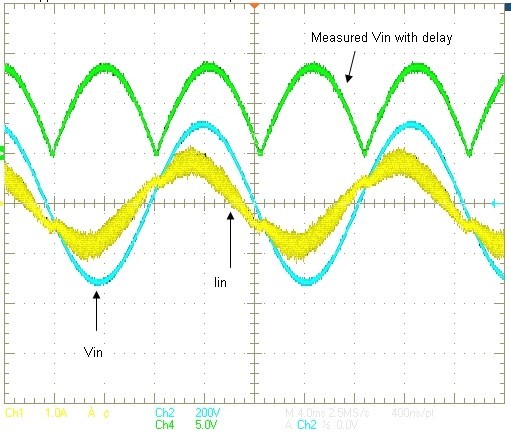 我們知道,PFC電流控制環(huán)路不斷嘗試強(qiáng)制電流與其參考匹配。該參考基本上是AC電壓信號(hào),只是大小不同。因此,如果我們能夠延遲電壓檢測(cè)信號(hào),并將延遲后的電壓信號(hào)用于電流參考生成,便可以讓電流延遲,來(lái)匹配AC電壓信號(hào),從而使PF得到改善。這對(duì)一個(gè)模擬控制器來(lái)說(shuō)比較困難,但對(duì)數(shù)字控制而言,只需幾行代碼便可以實(shí)現(xiàn)。
