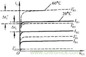 溫度對輸出特性的影響:如圖3實線,虛線分別所示為20℃和60℃時的特性曲線,可見,溫度升高時,由于輸入特性左移,導致集電極電流增大。