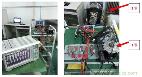 此次測(cè)試的對(duì)象為小型電機(jī)系統(tǒng),系統(tǒng)分為驅(qū)動(dòng)器、電機(jī)平臺(tái)、測(cè)試,3個(gè)部分。驅(qū)動(dòng)器輸出通過(guò)電纜連接到電機(jī)平臺(tái),電機(jī)轉(zhuǎn)軸上安裝扭矩