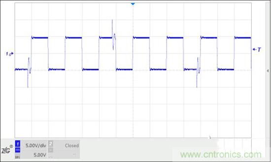 調(diào)試中發(fā)現(xiàn),驅(qū)動(dòng)器上電但未開啟輸出,電機(jī)轉(zhuǎn)軸處于自由靜止?fàn)顟B(tài),測(cè)量到一個(gè)較大的值。用示波器測(cè)量傳感器輸出,發(fā)現(xiàn)100kHz脈沖上每個(gè)幾個(gè)周期出現(xiàn)一些尖峰振蕩,經(jīng)過(guò)比較器后多了些脈沖,導(dǎo)致測(cè)頻結(jié)果高于100kHz。那么干擾信號(hào)從何而來(lái)?首先懷疑是驅(qū)動(dòng)器,驅(qū)動(dòng)器斷電干擾消失。把傳感器電纜從傳感器處拔出,100kHz和干擾都沒(méi)有了。證明干擾由驅(qū)動(dòng)器產(chǎn)生,通過(guò)驅(qū)動(dòng)器輸出線、電機(jī)、扭矩傳感器及連線耦合到功率分析儀。