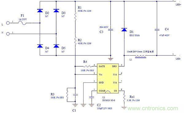 圖1:全閉環非隔離降壓恒流LED驅動電源參考意