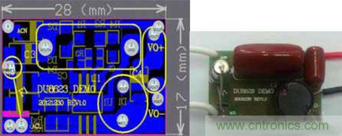 全閉環控制,檢測輸出電流,來發出PWM信號,是真正的恒流電源驅動控制技術。實驗表明,相對于其他非閉環的方案,這種獨有的閉環恒流控制技術使輸出電流精度有了質的飛躍,使整機電源在全電壓、全負載、電感變化范圍內的電流精度達到行業內目前最高的±0.9%.基于此閉環控制技術,DU8623集成1A高壓MOSFET,并且根據某些應用要求省略了電解電容,這就提供了一種高恒流精度,低成本、壽命優化的產品。