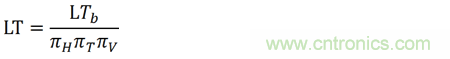 LT是考慮濕度、溫度和電壓的預(yù)估壽命,公式中的參數(shù),LTb是參考條件下的基本壽命,與每個(gè)高壓IGBT模塊的結(jié)構(gòu)相關(guān),濕度加速因子πH,溫度加速因子πT,電壓加速因子πV,其它的參數(shù)來(lái)自加速模型。在此壽命估算模型中,活化能EA定義為最小值0.79eV。同時(shí),參考條件,RHu=75%和Tu=25℃是東京8月份的平均環(huán)境條件。除此之外,Vu=1500V為直流網(wǎng)壓。