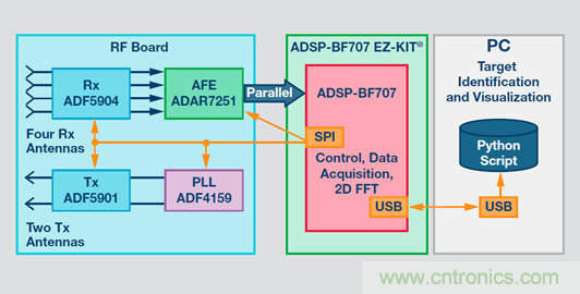 演示雷達平臺提供硬件和軟件,支持快速評估和開發24 GHz雷達,且無需RF微波和信號鏈系統專業知識,因此可在產品開發階段大大降低開發時間,并減少系統專業知識需求。平臺能提供包括DSP處理在內的高性能RF和完整模擬信號鏈,即RF到比特解決方案,支持靈活處理原始采集數據,可在非常短的時間內對先進的硬件進行雷達實驗。使用軟件圖形用戶界面(GUI)提供全面的24 GHz雷達IC軟件支持,在DSP雷達支持功能庫中,通過一些額外功能可寫入原始數據,并使用Matlab工具在PC上進行后處理。