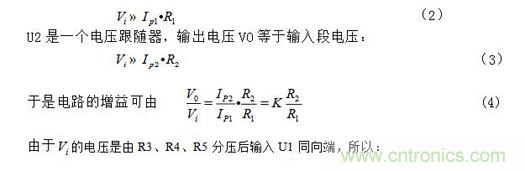 U1構(gòu)成一個負(fù)反饋放大器,其同相輸入端和反相輸入端的電壓應(yīng)近似相等,滿足:
