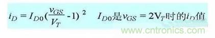 在轉移特性曲線上,gm 是曲線在某點上的斜率,也可由iD的表達式求導得出,單位為 S 或 mS。