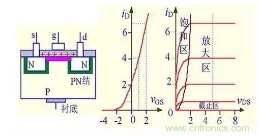 (1) VGS=0時,不管VDS極性如何,其中總有一個PN結反偏,所以不存在導電溝道。