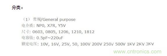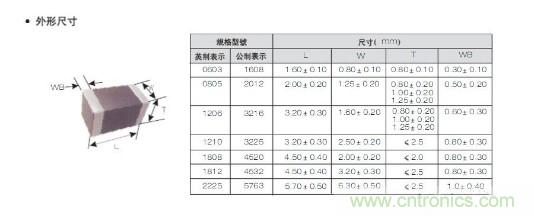 貼片電容規格: