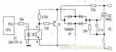 此電路對(duì)元件的要求比較高,光電耦合器U1只能采用型號(hào)為CNY17F-4的正品元件,實(shí)驗(yàn)中試過(guò)十多種光電耦合器,僅此型號(hào)輸入電流50μA時(shí),電路即可工作,其余光電耦合器驅(qū)動(dòng)電流都需幾百微安以上。