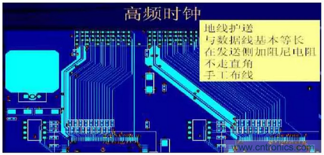 7、關鍵信號線(如時鐘線、總線、接口信號線、很射頻線、復位線、片選線)一般都是強輻射源或敏感信號線,盡可能靠近地平面布線,使其信號回路面積減少,減少其輻射強度或提高抗干擾能力。