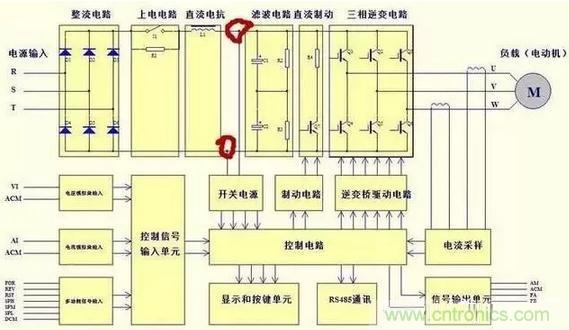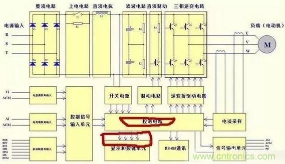 變頻器的控制電路包括開關電源、驅動電路、檢測電路(電流、電壓、溫度、故障、檢測)、操作控制電路和其他基本電路。