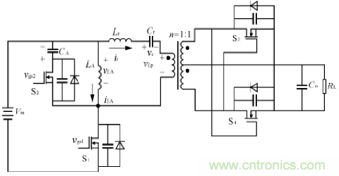 但設采用3.3V甚至1.8V或1.5V的供電電壓,所消耗的電流可達20A。此時超快恢復二極管的整流損耗已接近甚至超過電源輸出功率的50%。即使采用肖特基二極管,整流管上的損耗也會達到(18%~40%)PO,占電源總損耗的60%以上。因此,傳統的二極管整流電路已無法滿足實現低電壓、大電流開關電源高效率及小體積的需要,成為制約DC/DC變換器提高效率的瓶頸。