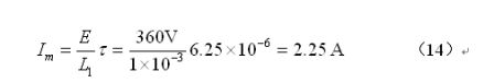 根據(jù)圖8和圖9,正常工作時(shí),流過高壓包初級(jí)線圈的最大電流Im不應(yīng)該超過極限電流值Imax的70%,由此,可以求得流過高壓包初級(jí)線圈的極限電流Imax為1.49 A 。