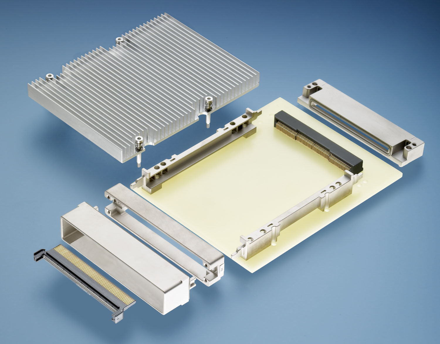 收發器上蓋與外部托架組件均具備自有EMI屏蔽性能,能夠幫助OEM線卡設計人員減少EMI兼容性方面的工作。此外,這套兼容CFP的連接器能夠實現聯合(雙面)安裝,以帶來更高的線卡密度。同時,凹形散熱片可以支持需要額外散熱管理的CFP光收發器。