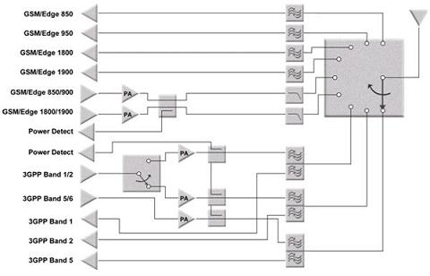 隨著多頻段架構的普及,對功率放大器和相關濾波器的數量提出了嚴格的要求。事實上,對功率放大器的技術要求沒有變化,但手機設計需要使用更多的功率放大器。因此真正改變的,是需要一種高效率方法,將所有射頻信號傳送給天線──即單片開關。