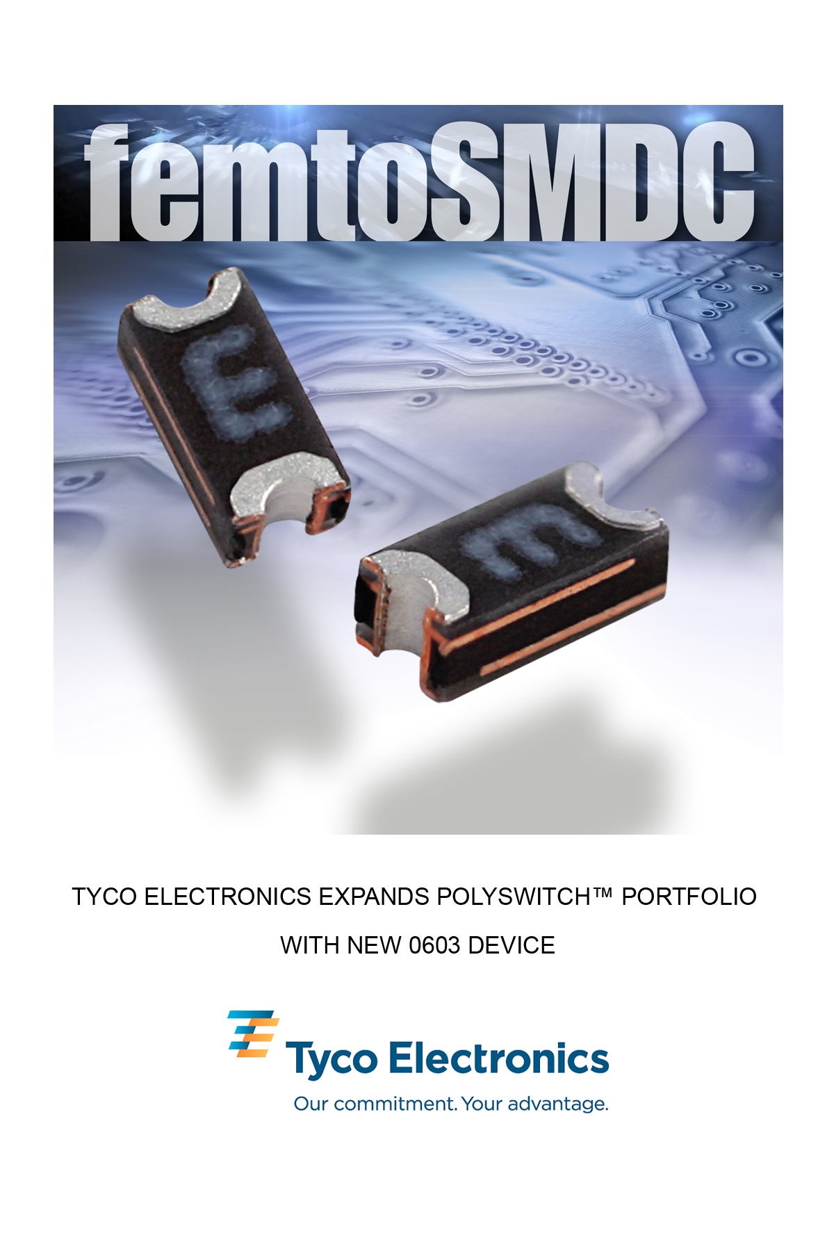 泰科電子(Tyco Electronics)今天宣布其廣受歡迎的表面貼裝PolySwitch™器件系列再添一款符合行業標準的新型0603器件。femtoSMDC016F器件的占板面積不到上一代器件的一半,并且有助于保護敏感電子電路免受過流及過溫事故的損壞。該器件的快速動作時間和可復位功能可幫助制造商降低保修費用和提高各種便攜式電子產品的可靠性,比如以下產品: