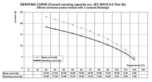 額定電流,是促使母端子特定升溫的電流量,一般為20℃或30℃。要正確使用這數(shù)據(jù),除了須了解其測試方法,也須留意其測試環(huán)境。例如:有些單純測試一對相接卻沒有安裝在外殼內(nèi)的母端子及公針。眾所周知,影響連接器的升溫的因素,包括接觸電阻、電流量及散熱渠道。在實際應(yīng)用時,公針母端子是安裝在外殼內(nèi)的。因此,散熱渠道劇減。再加上一般同時使用多個接觸對,更不能以額定電流峰值設(shè)置為連接器的工作電流。