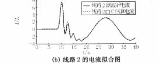 對上述方法用Matlab編程,對仿真數(shù)據(jù)進行分析,求解系統(tǒng)對地電容值。考慮到噪聲污染以及各種隨機干擾的存在,先對故障數(shù)據(jù)進行數(shù)字濾波,將17次以上的諧波去除后再對仿真或?qū)崪y數(shù)據(jù)進行運算。本例所得由電容所計算電流與濾波后電流擬合波形如圖3所示(本文對數(shù)據(jù)濾波時采用的是巴特沃思濾波器,除去9次諧波以上的高次諧波)。