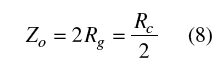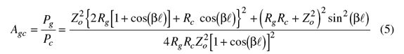 這里:Rg=源阻抗、Rc=負載阻抗、Zo=傳輸線特性阻抗、βl=相位因子、l=kλ=傳輸線長度(這里λ是波長,k是小數值)。