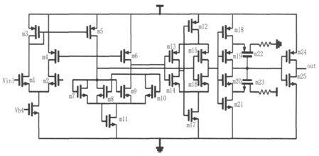 核心電路中M1~M12 一起構成共源共柵電流鏡來提供直流偏置,運放op1 采用兩級共源共柵放大。另外,在圖10 電路中引入了負反饋,保證了該偏置電路電流鏡的準確性,同時與電源無關,具有很高的電源抑制比。