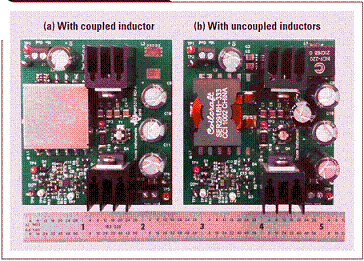 “表 1”所示規范為設計比較的基礎。第一個設計使用一個耦合電感,而第二個則使用兩個非耦合電感。