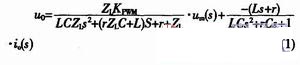 對(duì)于圖1所示的單相全橋逆變器,可得到下面的單相逆變電源的連續(xù)域數(shù)學(xué)模型式: