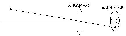 四象限光電探測器實際由四個光電探測器構成,每個探測器一個象限,目標光信號經光學系統后在四象限光電探測器上成像,如圖1。一般將四象限光電探測器置于光學系統焦平面上或稍離開焦平面。當目標成像不在光軸上時,四個象限上探測器輸出的光電信號幅度不相同,比較四個光電信號的幅度大小就可以知道目標成像在哪個象限上(也就知道了目標的方位),若在四象限光電探測器前面加上光學調制盤,則還可以求出像點偏離四象限光電探測器中心的距離或θ角來。