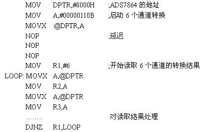 根據真值表,可以用圖4中的邏輯電路來實現這兩個使能信號。系統的最終目標就是獲取數據,然后計算得出結果。89C51控制ADS7864轉換和讀取轉換結果的代碼如下: