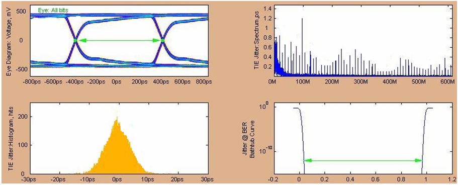 圖10 1228.8Mbps發送側眼圖(經5inches FR4走線,調整了最優的去加重補償)