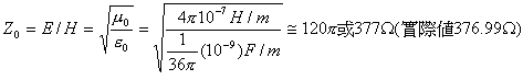 這種外貌是由天線所觀測到的物理「輪廓」;這就好像從河邊向河中打水漂一樣,我們所看到的水波是一波波的漣漪。場傳播是從場的點源,以光速的速度向外輻射出去;其中,。電場成份的測量單位是V/m,磁場成份的測量單位是A/m。電場(E)和磁場(H)的比率是自由空間(free space)的阻抗。這里必須強調的是,在平面波中,波阻抗Z0,或稱作自由空間的特性阻抗,是和距離無關,也和點源的特性無關。對一個在自由空間中的平面波而言: