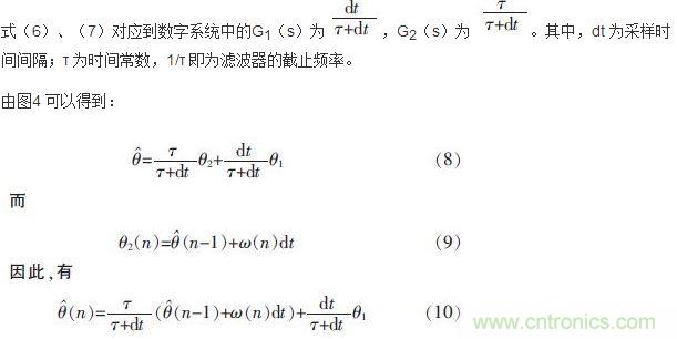 由(8)式可看出,在小于截止頻率的低頻段,加速度計對姿態解算結果起主要作用;在大于截止頻率的高頻段,陀螺儀對姿態解算結果起主要作用。通過調整時間常數,改變濾波器的截止頻率τ,實現對陀螺儀和加速度計權重的調整。