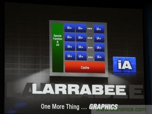 在2007年的IDF上,Intel正式揭開獨立顯卡——代號“Larrabee”的神秘面紗,Larrabee隸屬于其萬億次運算項目(Tera-scale),也將是Intel的第一款實用級萬億次運算處理器,其處理能力“大大超過”一萬億次浮點每秒;根據(jù)Intel首席架構師EdDavis的演示文稿,Larrabee基于可編程架構,主要面向高端通用目的計算平臺,至少有16個核心,主頻1.7-2.5GHz,功耗則在150W以上,支持JPEG紋理、物理加速、反鋸齒、增強AI、光線追蹤等特性。