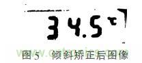 由圖4(b)可以看出,經(jīng)膨脹處理和邊緣檢測后的圖像可以將液晶屏數(shù)字的輪廓勾勒出來。對圖4(b)進行霍夫變換,可以獲取圖像中每條線段的端點,進而可以求其反正切函數(shù),即求得每條線段與橫軸之間的夾角。對其余傾斜角求取平均值,即認為是圖3(c)的傾斜角度。