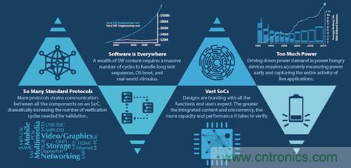 設(shè)計(jì)規(guī)模更大的協(xié)議集成會(huì)增加復(fù)雜度和尺寸。此外,各種功能、多處理器和嵌入式軟件也會(huì)增加其復(fù)雜度和尺寸。消費(fèi)者希望產(chǎn)品能夠處理更多功能。這些設(shè)備必須提供集成的數(shù)字、音頻、語(yǔ)音和數(shù)據(jù)功能,且始終保持運(yùn)行和連接狀態(tài)。