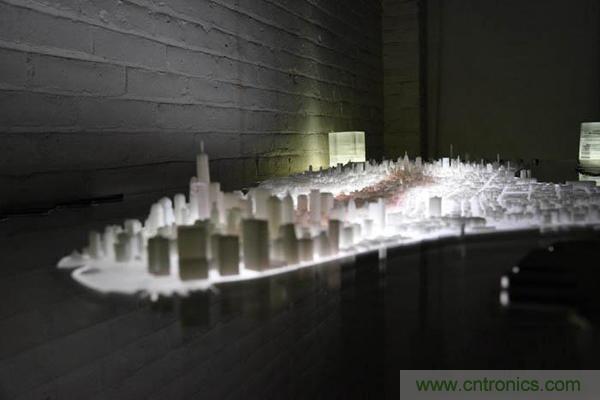 【導讀】在紐約長大的藝術家Troy Huang使用3D打印和激光切割技術制作了一張讓人驚艷的桌子,這張桌子上布滿了曼哈頓的每一棟建筑模型。這就是曼哈頓城區的微縮模型,盡管是微縮的,但是其中的每棟建筑、每條街道都清清楚楚,十分精細,再用LED燈點亮,一座燦爛輝煌的世界之都呈現在我們眼前。