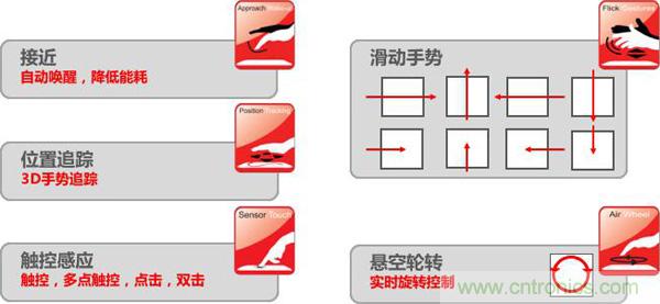 圖3:GestIC技術(shù)可識(shí)別的3D手勢(shì)和動(dòng)作