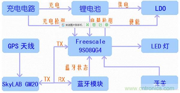 藍(lán)牙GPS模塊也是一個(gè)小小的便攜設(shè)備,需要實(shí)現(xiàn)電源的管理、GPS數(shù)據(jù)的處理、藍(lán)牙狀態(tài)的判斷以及點(diǎn)亮指示燈等功能。這都要求使用一個(gè)MCU來協(xié)調(diào)控制整機(jī)的工作。