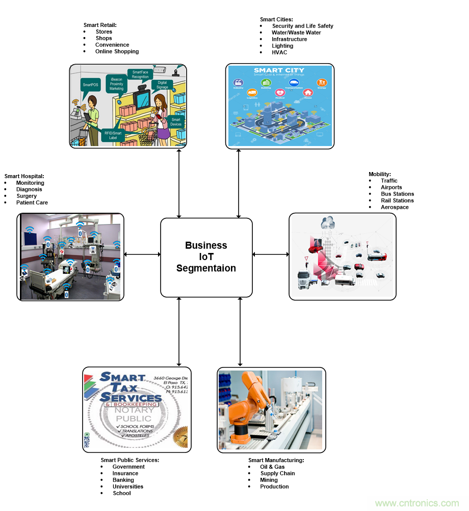 企業(yè)物聯(lián)網(wǎng)的覆蓋范圍巨大,包括零售、醫(yī)療、能源、出行、城市、制造業(yè)和公共服務(wù)。企業(yè)物聯(lián)網(wǎng)細(xì)分市場(chǎng)會(huì)改變組織和社區(qū),從而創(chuàng)造一個(gè)實(shí)現(xiàn)經(jīng)濟(jì)增長(zhǎng)的新時(shí)代。物聯(lián)網(wǎng)通過(guò)連接數(shù)據(jù)、人員和機(jī)器來(lái)提高生產(chǎn)力、生產(chǎn)效率以及日常運(yùn)營(yíng)水平。企業(yè)物聯(lián)網(wǎng)也可以作為幫助企業(yè)識(shí)別未開發(fā)領(lǐng)域新增長(zhǎng)機(jī)會(huì)的工具。